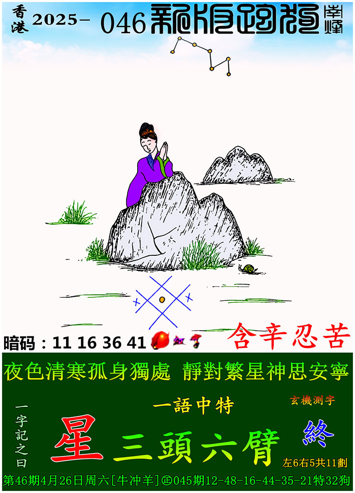 046期:新版跑狗一字記之曰【星】 玄機測字:【終】