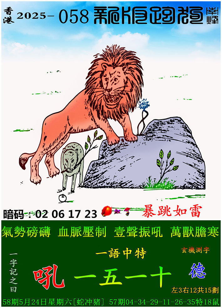 058期新版跑狗一字記之曰:【吼】