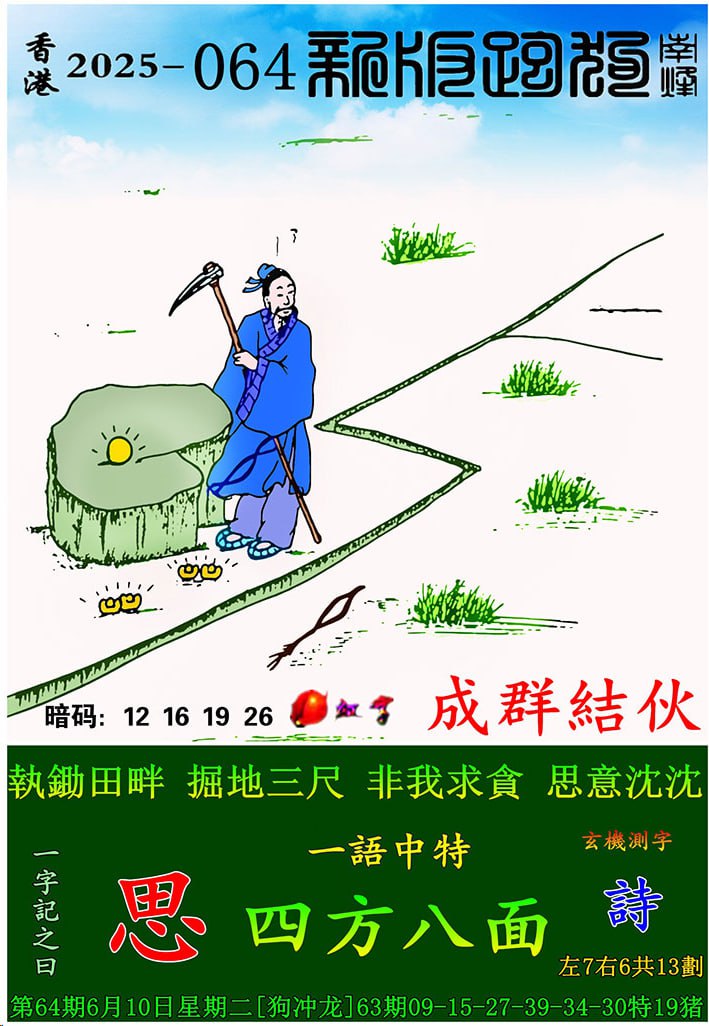 064期:新版跑狗一字記之曰【思】 玄機測字:【詩】