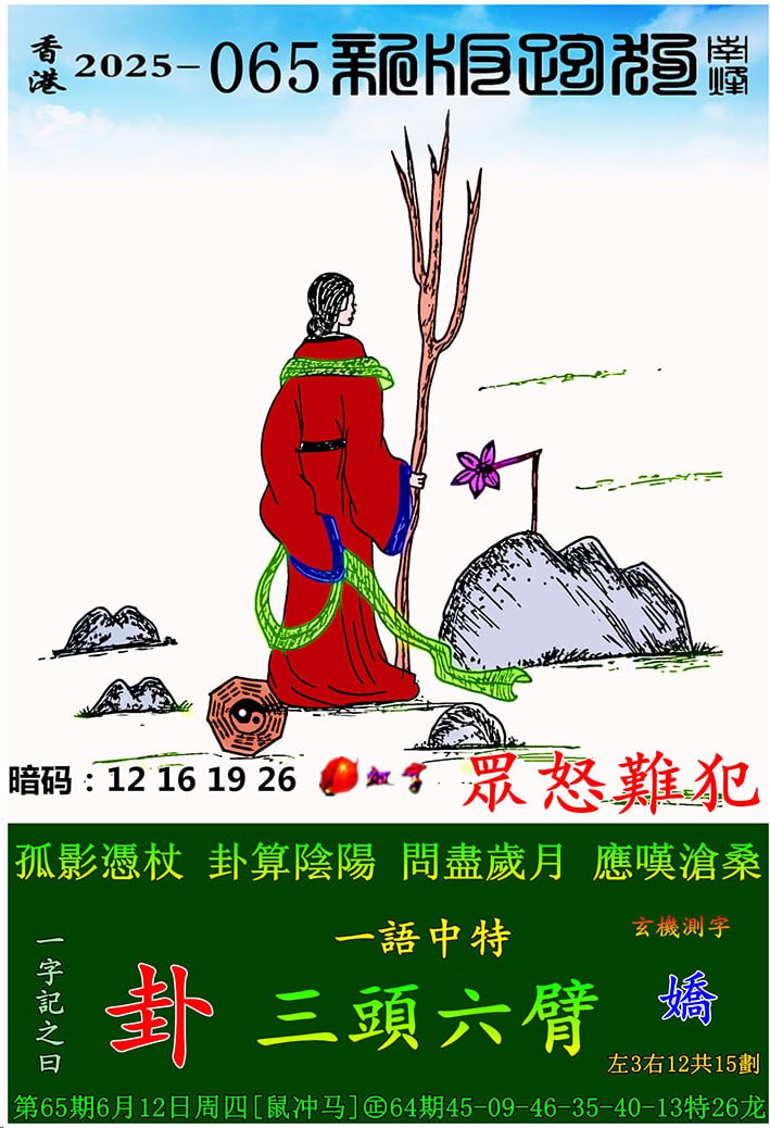 065期新版跑狗一字記之曰:【卦】