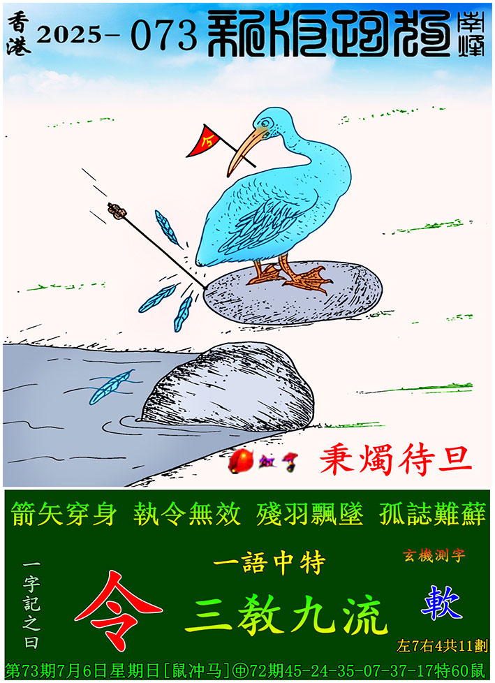 073期:新版跑狗一字記之曰【令】 玄機測字:【軟】