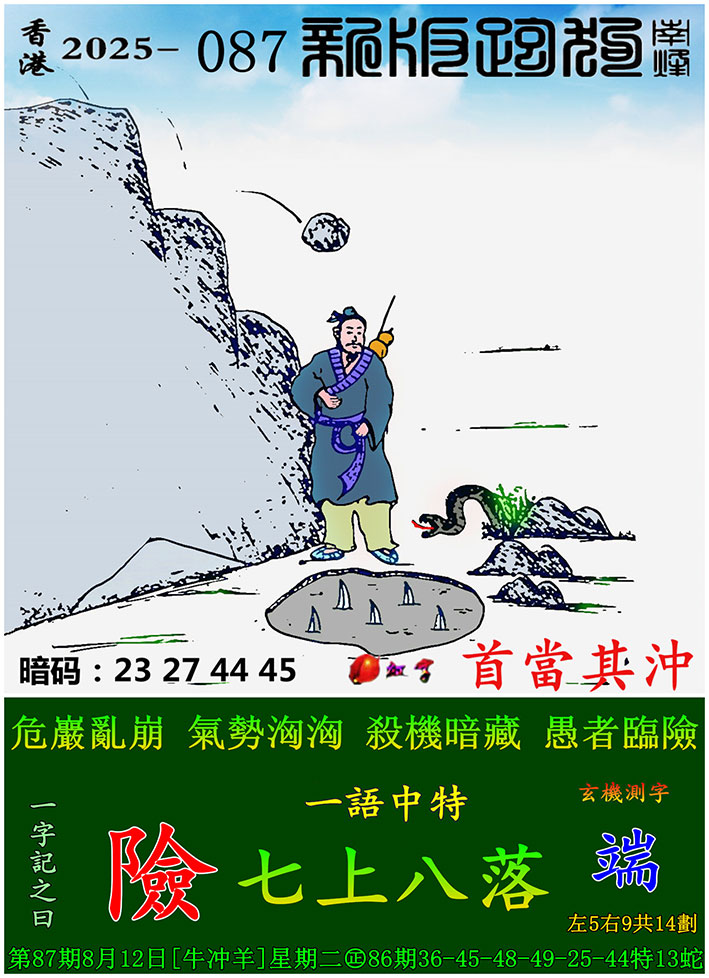 087期新版跑狗一字記之曰:【險】