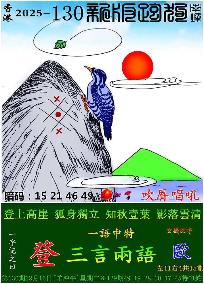 主题 : 130期:新版跑狗一字記之曰【登】 玄機測字:【歐】