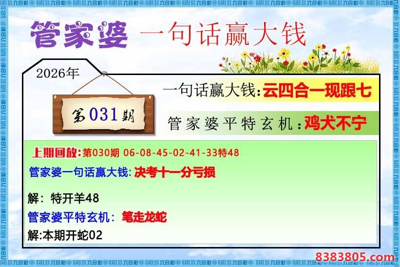 031期:管家婆一句话赢大钱