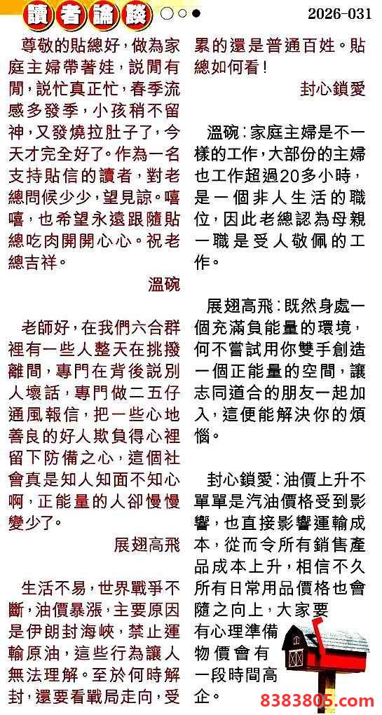 031期:彩民推荐贴信读者论坛